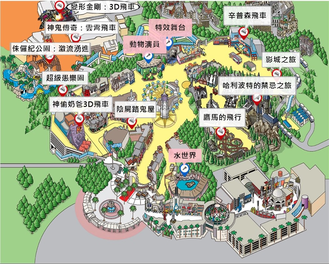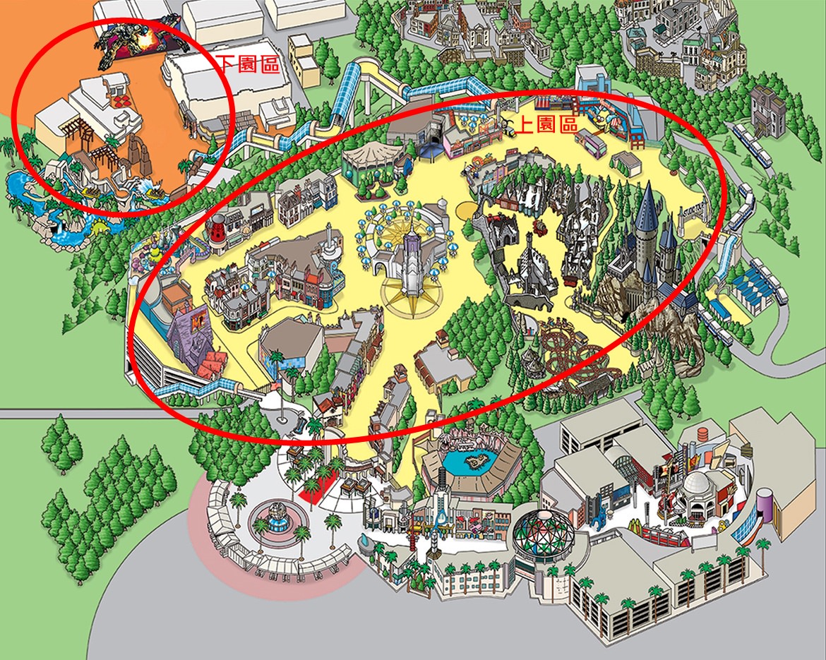 大家要來環球影城之前一定要先做功課啊!先安排好哪些設施、景點是來環球影城最想去必去的,依照自己的喜愛程度安排玩的順序~~~越後面的行程最好排那種沒玩到也沒關係不會心痛的那種,這樣才能有效的節省時間啊!另外如果是親子同行,也要事先注意一下遊樂設施有沒有身高限制等,下面村長會列出上下園區的景點及設施:
