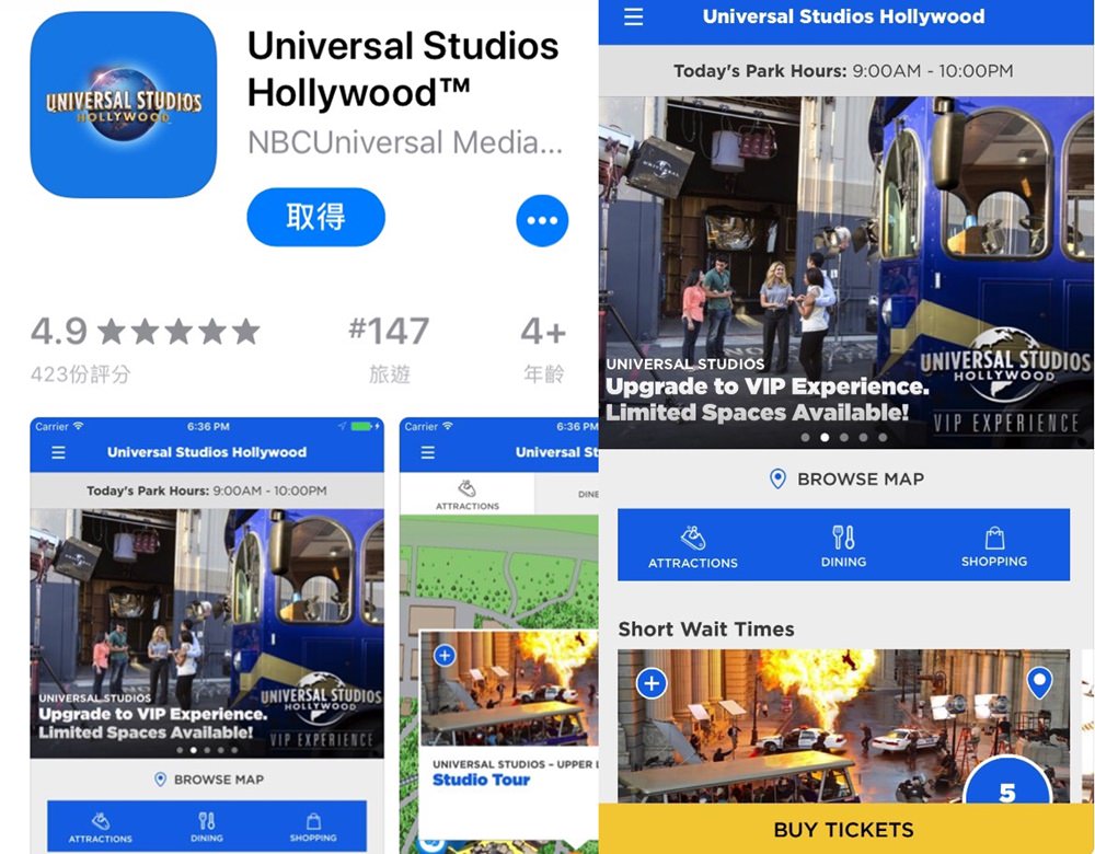 好萊塢環球影城裡面比較熱門的設施都有Single Ride可以排,如果不介意跟親友分開體驗、可以接受跟陌生人一起搭乘,可以多多利用Single Ride,可以比較快搭乘遊樂設施!另外如果沒有購買快速通關門票的人,也可以下載 Universal Studios Hollywood的手機App,這個APP除了可以知道你現在位置在哪、附近有哪些設施外,還能查看每項設施的排隊時間跟表演的演出時間,居然還可以設置鬧鐘提醒你時間要到了,超級方便!