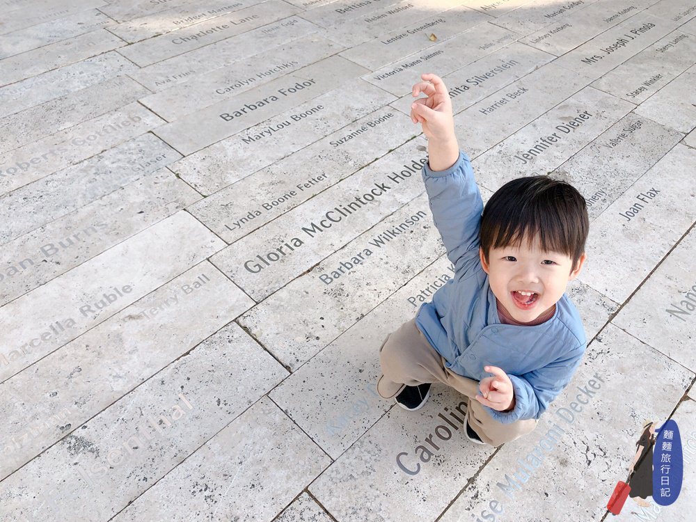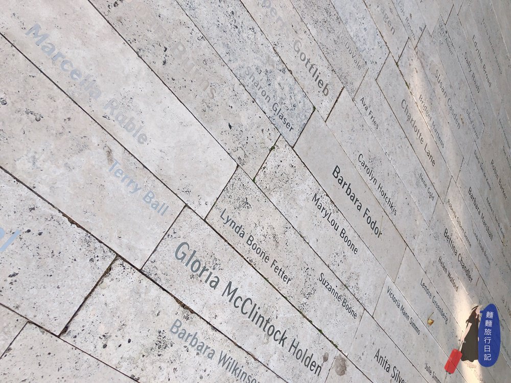 其實在建構音樂廳的時候,因為大幅超出預算使得建構工程一度停擺,當時洛杉磯市長理察·雷登與加州慈善家艾里·博洛特展開募款活動,才有了資金繼續完成華特迪士尼音樂廳,地上的人名都是對音樂廳有所貢獻的紀念名字,天啊到底花了多少錢蓋這音樂廳啊。