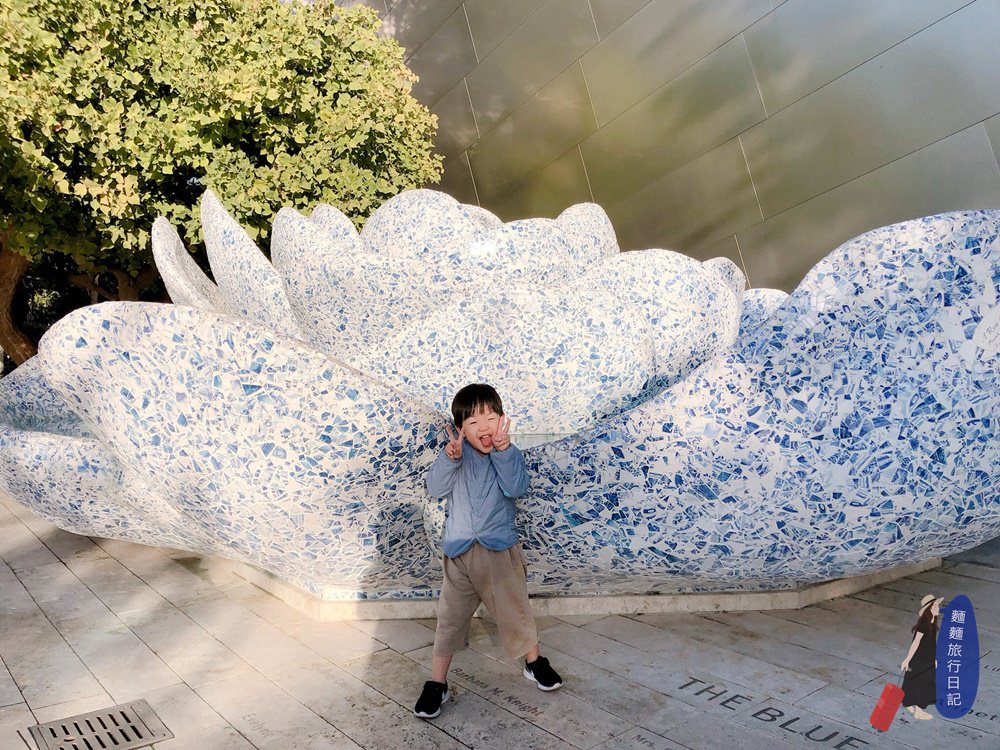 加州華特迪士尼音樂廳Walt Disney Concert Hall是來美國LA必來拍照打卡的知名地標,這裡是全美五大交響樂團之一的洛杉磯愛樂管弦樂團跟合唱團的本部,除了來聽音樂會之外,因為超級獨特的建築物外型吸引很多觀光客前來,我們就是其中之一啦!(觀光客無誤),雖然沒有要來欣賞演出,但是迪士尼音樂廳裡面有個藍絲帶花園Blue Ribbon Garden可以讓小孩跑跳,還是免費滴!你們說不去對嗎?!!! 覺得來美國體會很深的除了多元種族之外、第二個就是美國真的很棒,居住在這裡的人就算貧富差距再怎麼大,都還是擁有很多資源,如蓋地中心、到處走隨便都有讓小朋友玩可以放風的公園、音樂廳或美術館,除了你想看欣賞音樂廳的表演或是看展需要付費外,其他基本上都是免費的,擁有這些資源真的是讓村長我羨慕季妒恨啊!希望台灣政府在鼓勵生育的時候,也能將打造親子環境以及人民享有的資源等考量進去,不要每次快選舉只是修整道路而已。(是要說政見了嗎?)(哈哈哈)(賣鬧)