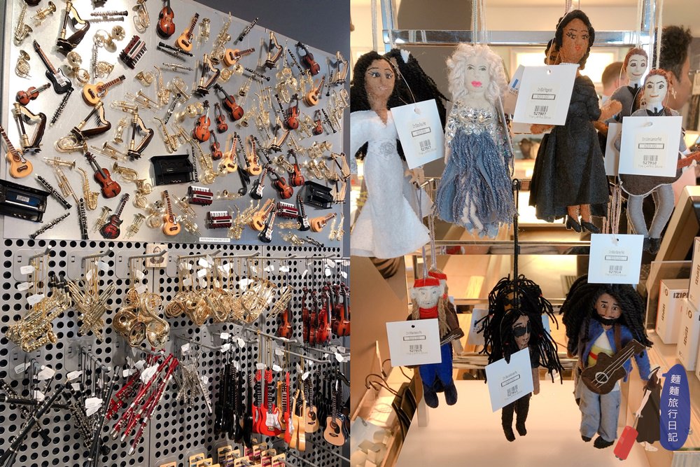 紀念品店裡賣很多關於音樂的商品,像是各種樂器造型的磁鐵跟看起來頗詭異的吊飾娃娃,應該是不同的音樂人之類的,但是做得一點都不可愛,有一種很可怕的感覺 my god~ 😂