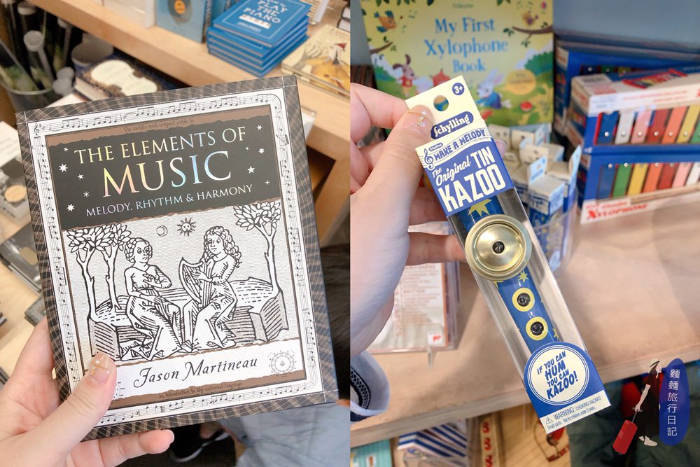 另外還有樂譜、音樂書之類的,跟一些可愛簡單小朋友的樂器,右邊的KAZOO是一種很有趣的樂器叫卡祖笛,好像是對著卡組迪哼唱使樂器震動後發出聲音,話說這裡有很多奇妙又神奇的樂器耶!很好逛,雖然沒啥音樂天份,但是購物天份滿分哦~~~
