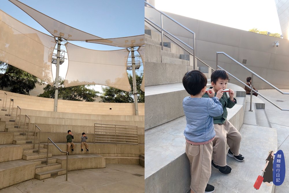 啊~忘記說華特音樂廳Walt Disney Concert Hall有地下停車場,所以不用擔心停車位問題喔!如果大家對音樂有興趣也可以上網看看有哪些演出,可以來欣賞一場音樂會後,在順便逛逛LA這棟超級特殊、獨特的音樂廳,如果怕小孩無法安靜聽完一場音樂會也可以像我們一樣(小孩吵鬧會被請出音樂廳喔😅) ,只來逛逛、拍照,這裡超好拍,波仔跟樂樂在這裡度過了一個愉快的午後,我們要走的時候都已經傍晚了呢!