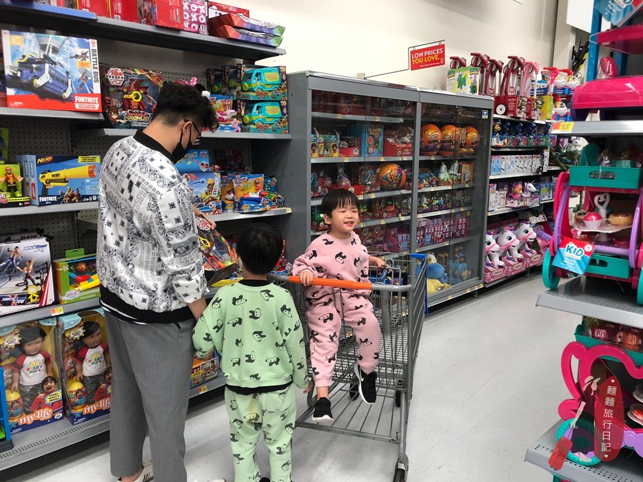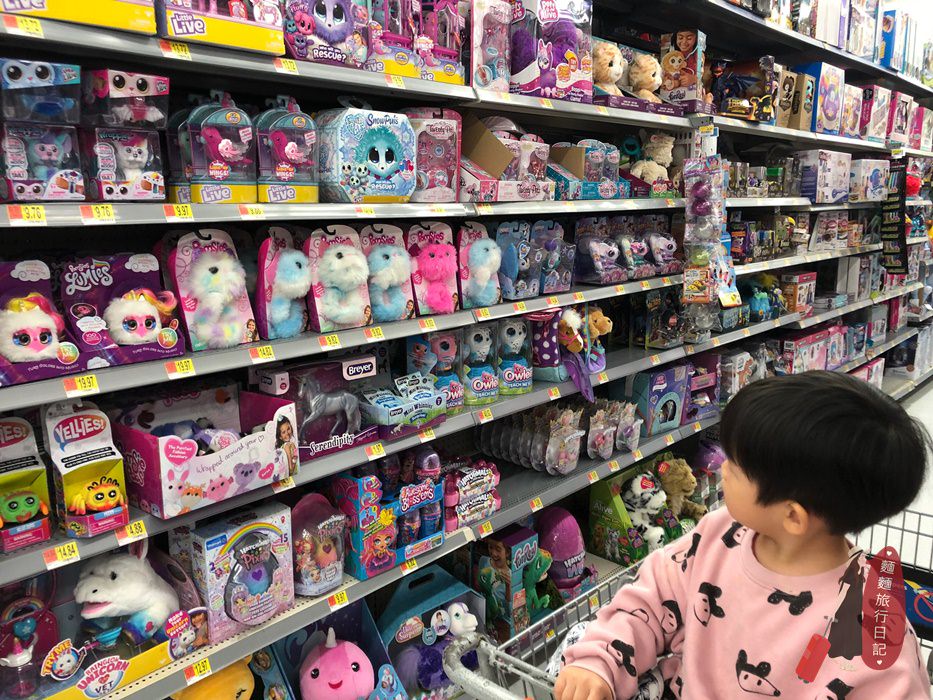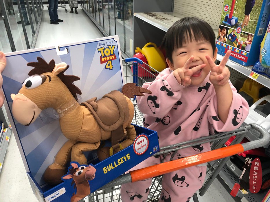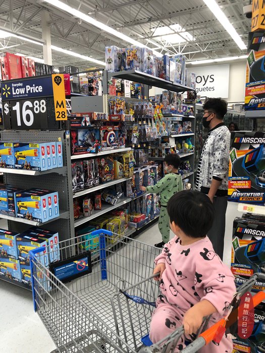 這次因為要來美西整整1個月,行李扣打完全裝不下屁孩的玩具好嗎?而且聽說美國的玩具比較便宜,所以毅然決然決定到美國再買玩具給波仔跟樂樂,也慶祝我們的美好LA之旅正式展開(想的太美好,接著迎接我們一家四口的是嚴重時差+水土不服😓),所以一下飛機我們就來到美國知名的超市沃爾瑪 Walmart。