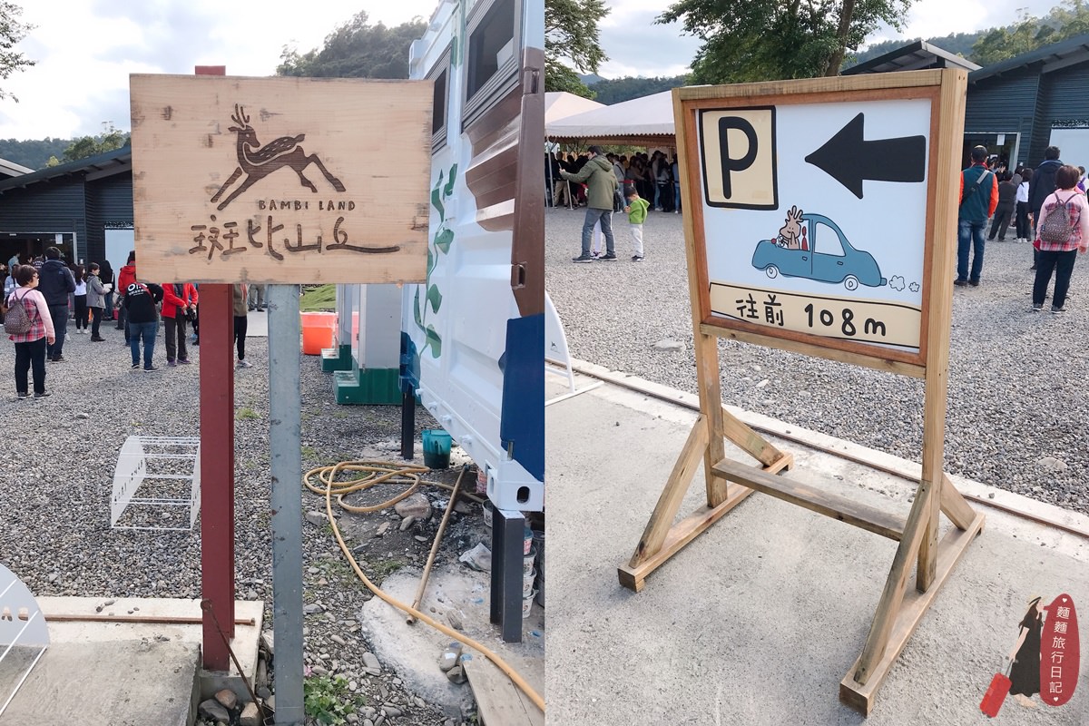 建議前往斑比山丘開車或騎機車,斑比山丘有規劃自己的停車場,超級大的停車場,不用擔心沒位子可以停,從停車場走到斑比山丘只要三分鐘喔!滿近的,招牌很可愛,用木板蓋上斑比山丘LOGO~