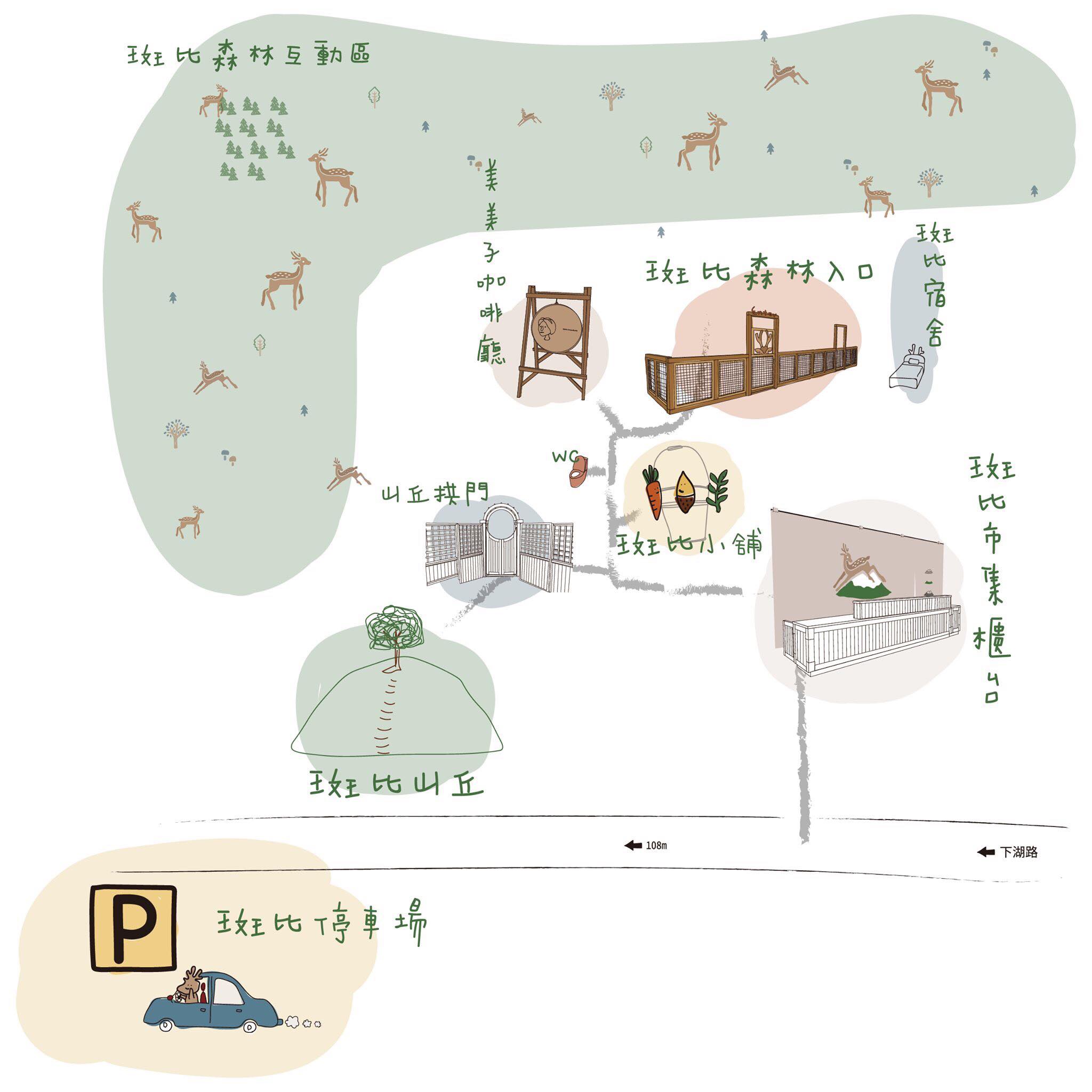 雖然斑比山丘的園區不大,但是除了有與梅花鹿近距離的接觸與體驗外、還有斑比宿舍、斑比的周邊商品區、提供遊客拍網美照的斑比山丘、可邊喝咖啡吃蛋糕邊看可愛梅花鹿的美美子咖啡廳。