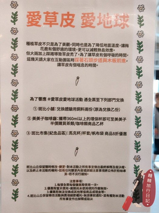 斑比山丘為了響應愛草皮愛地球活動,所以購買門票可以換以下選項(任選一項):
