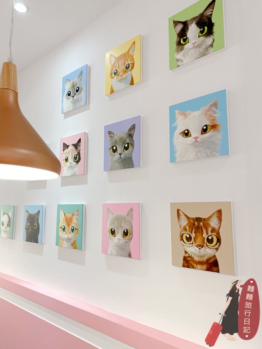 店裡除了大量的粉白色外,牆上跟店裡的裝置藝術還有很多很多很多可愛又萌的貓咪~ 愛咪蕾夏店名裡的Les Chats其實是法語的愛貓咪的意思!