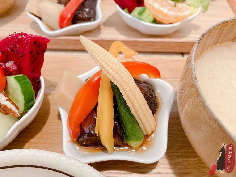 一點點的水果盤也太浮誇!!!整個都要滿出來了,底部是用生菜鋪底,然後擺滿種類豐富的水果有哈密瓜、芭樂、火龍果、橘子、小番茄、鳳梨、草莓、紅石榴外,被塞滿的水果小盤上還撒了堅果,而且水果都爆甜的好吃!