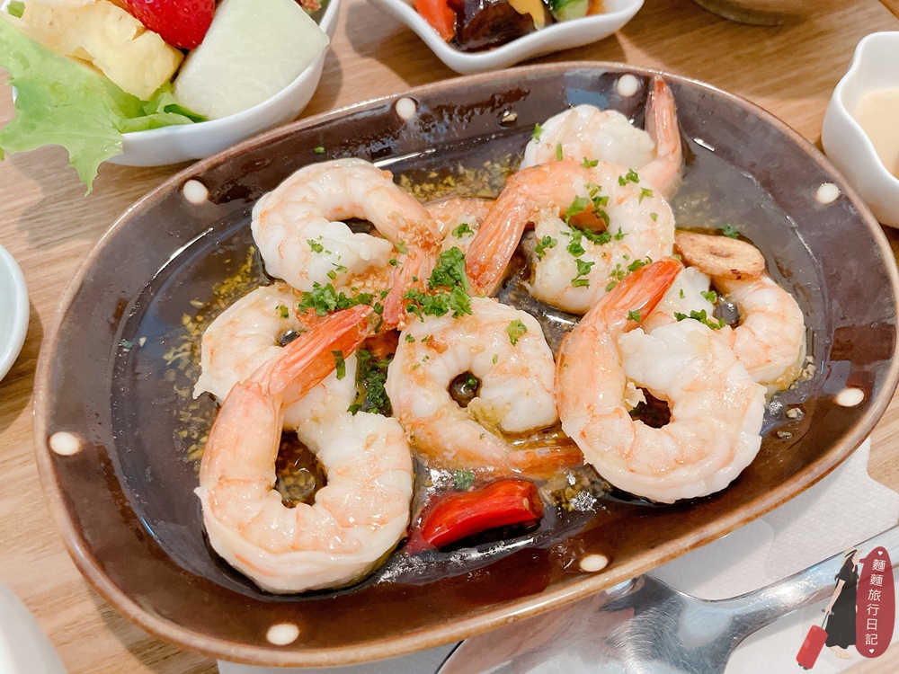 另外一道主餐是西班牙蒜油蝦,蝦子已經去好殼了!有點像costco的帶尾冷凍蝦仁!