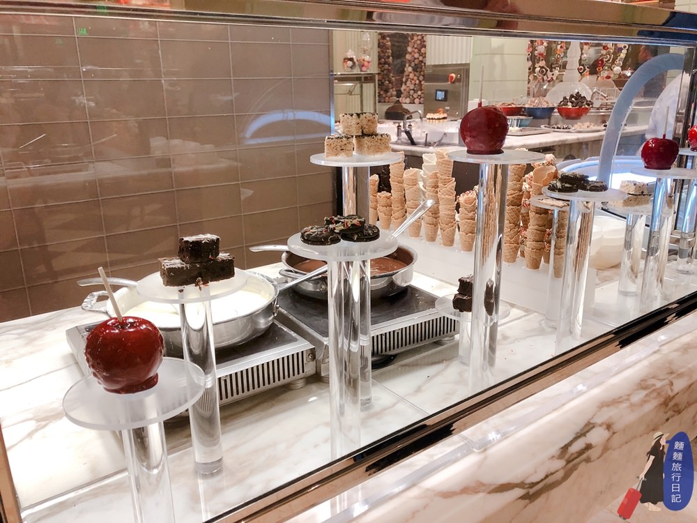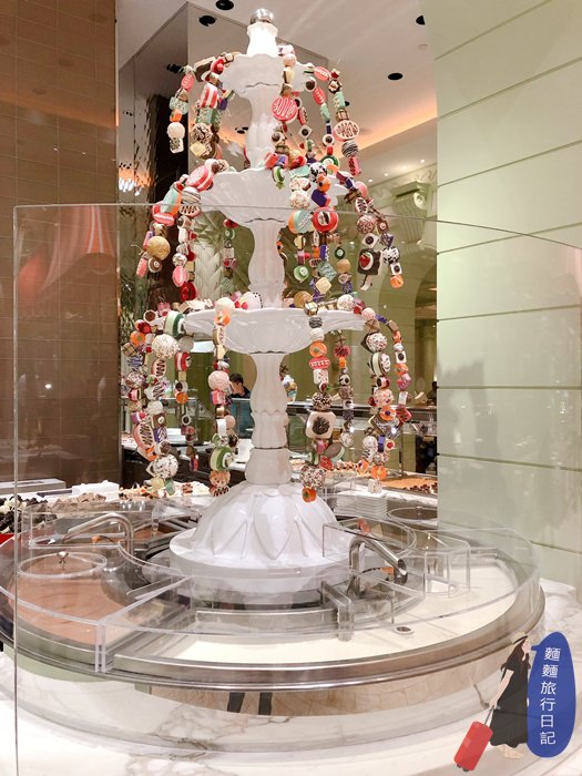 Wynn Buffet 的甜點根本可以獨立拉出來做一個下午茶甜點時段了,甜點師傅直接在後面現做好吃的甜點,這個浮誇的裝飾是甜點噴泉,雖然我不喜歡吃甜點,但是看著美麗的甜點,好療癒啊!