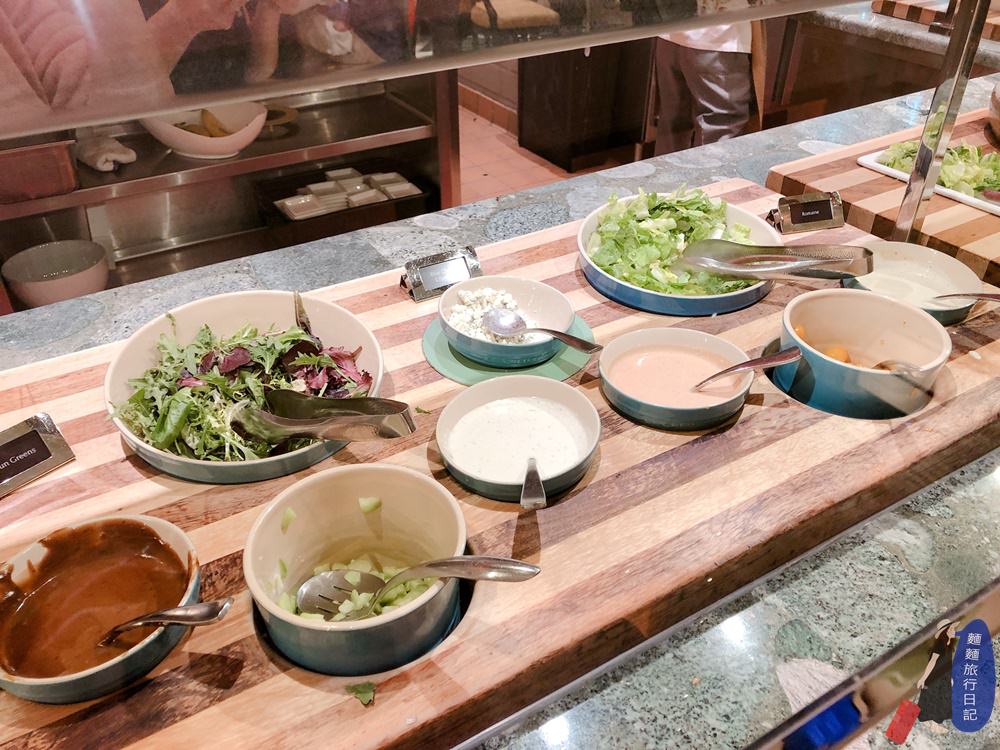 蔬菜都還滿新鮮的,沙拉醬也提供很多種類!
