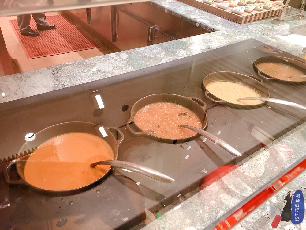湯品區,最左邊這一桶橘色的濃湯是龍蝦湯喔!每次補滿都會被搶光見底,終於讓我在補湯的時候遇到啦哈哈哈~~~~~但喝了覺得沒有特別好喝啊!有點苦苦的耶?!!!老外怎麼都超愛啊???不懂~