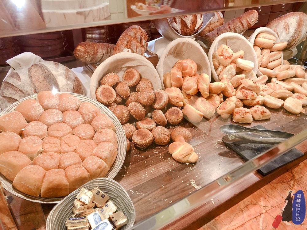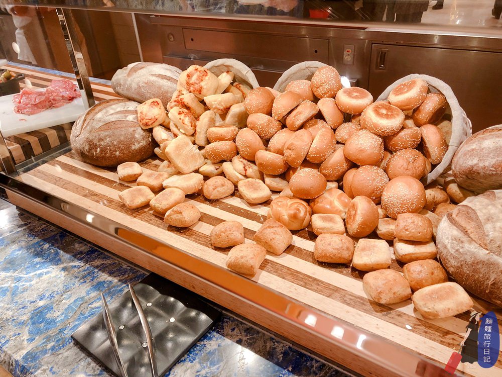 不知道為什麼美國的Buffet都會有一區是滿山滿谷的麵包,各式各樣、堆好堆滿,而且這樣擺放,又讓人特別想吃了!但是身為台灣人,真心覺得去吃自助餐拿麵包很浪費錢啊!