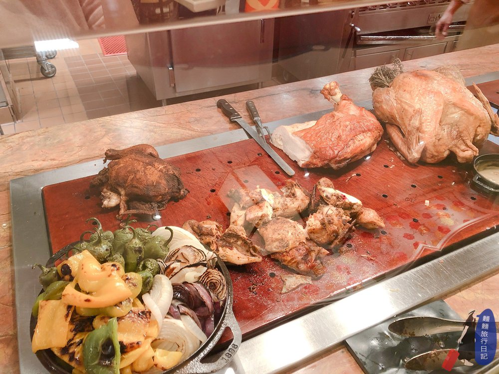 各式各樣的烤雞烤鴨烤火雞,旁邊還有一整盤的烤蔬菜可以任你搭配!