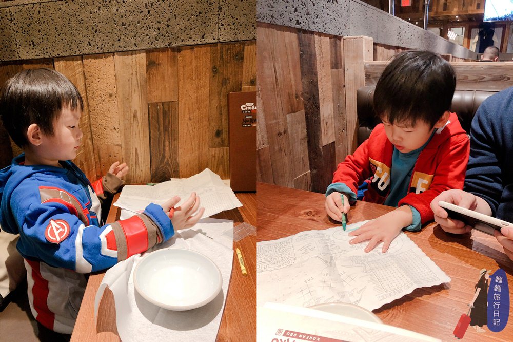 這間餐廳一樣有提供兒童菜單,波仔跟樂樂又展開了作畫模式。