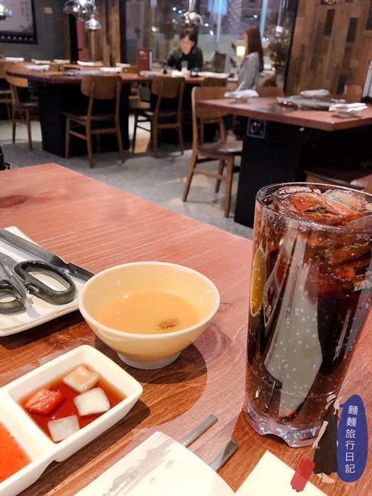 飲料跟醬料會先被送上桌,在美國餐廳用餐,我們幾乎都點可樂汽水飲料比較多,因為美國什麼都貴,就快樂肥仔水便宜嘛~~~