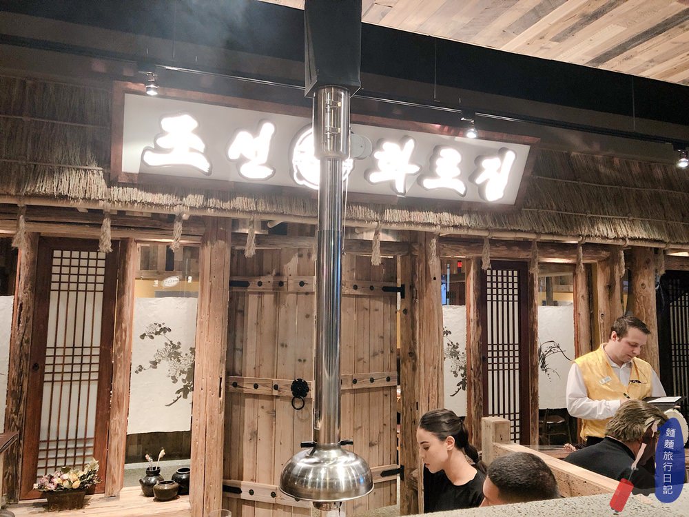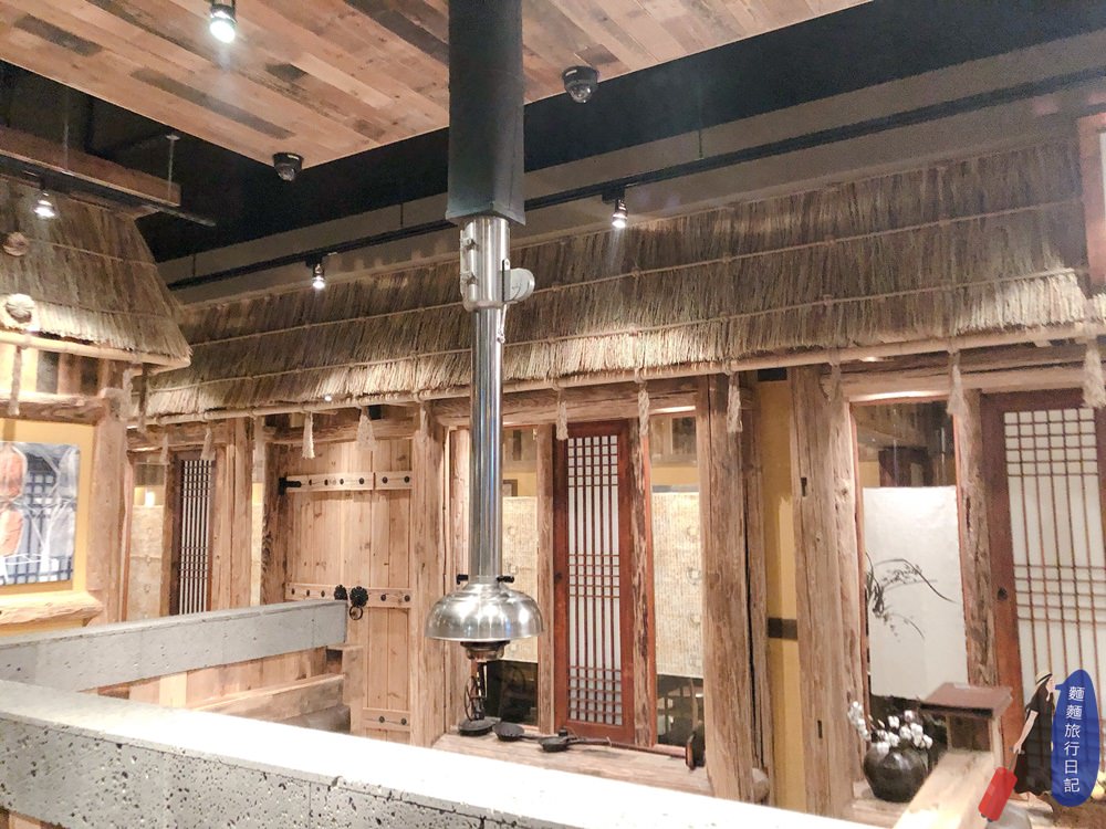 如果是吃韓式燒烤的客人,有兩種座位區可以選擇,一種是比較適合小家庭、三五好友的半開放式包廂座位區,這裡的座位區超級復古,用木板、厚水泥牆跟稻草,我猜想餐廳應該想營造韓國傳統建築,我自己滿喜歡的,很有味道!感覺在這個環境吃韓式燒烤,更韓了!