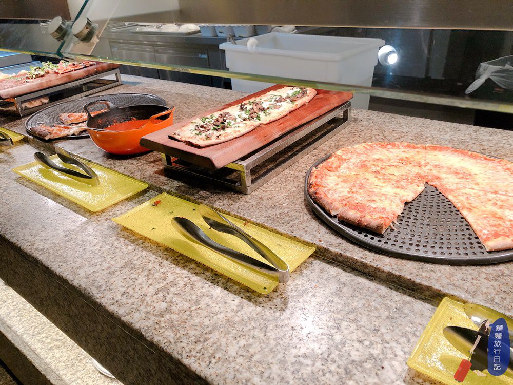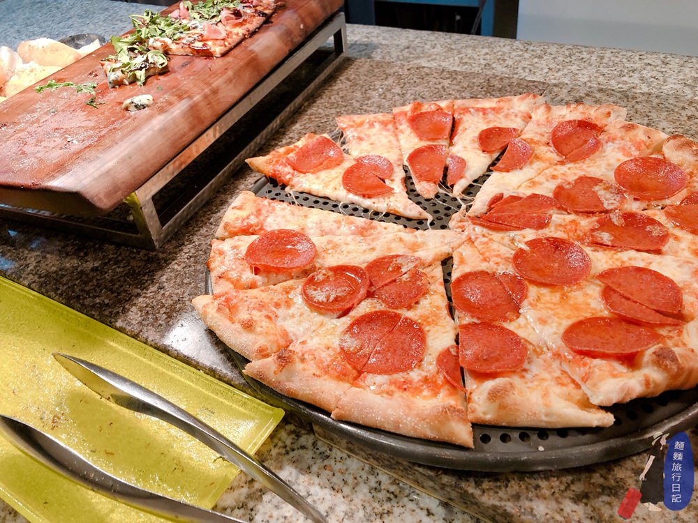 披薩也是吃了滿飽的食物,但是走過來的時候剛出驢義式臘腸口味,忍不住拿了兩片,美國的披薩都還滿好吃的,經典口味絕對不會讓你失望,滿滿的番茄醬料鋪底,然後起司不用錢的撒好灑滿,加上臘腸,真的很好吃,就是比較鹹一點啦~