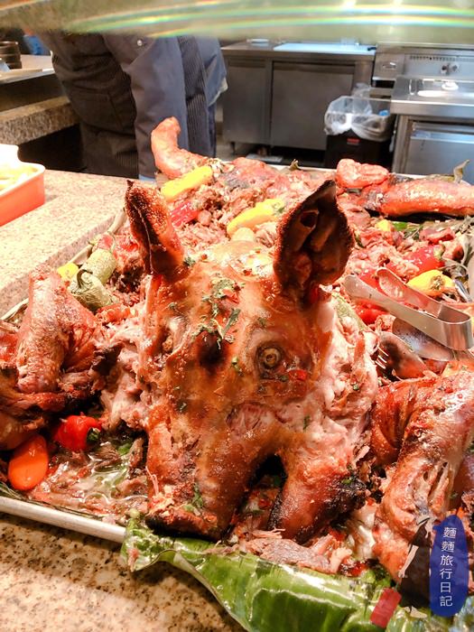 除了海鮮之外,當然少不了各式各樣的肉類料理,BACCHANAL的菜色真的很多,只是出現這隻烤乳豬,我真的也嚇好大一跳!外國人應該更驚吧,佩佩豬,你還好嗎?