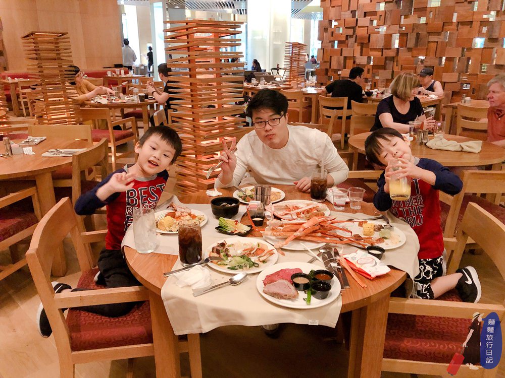 凱薩宮的BACCHANAL BUFFET料理種類真的琳琅滿目,我們一家四口吃的超飽,而且誤打誤撞用午餐的價位吃到晚餐才有的帝王蟹腳,真的是太開心啦~~~不同的異國料理,選擇豐富多樣,而且都有不同的廚師負責,餐點都有一定的水準,完全看的到廚師的料理過程,吃的很放心呢~ 海鮮必吃、肉類我也覺得很不錯、然後最後就是萬眾矚目的甜點天堂,不誇張蛋糕甜點種類我覺得都跟主食一樣多了吧!買尬!愛吃蛋糕的人千萬不行錯過!BACCHANAL BUFFET推薦給大家~