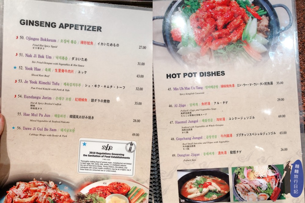 另外一本的菜單則有韓式小菜,居然有單點水餃。