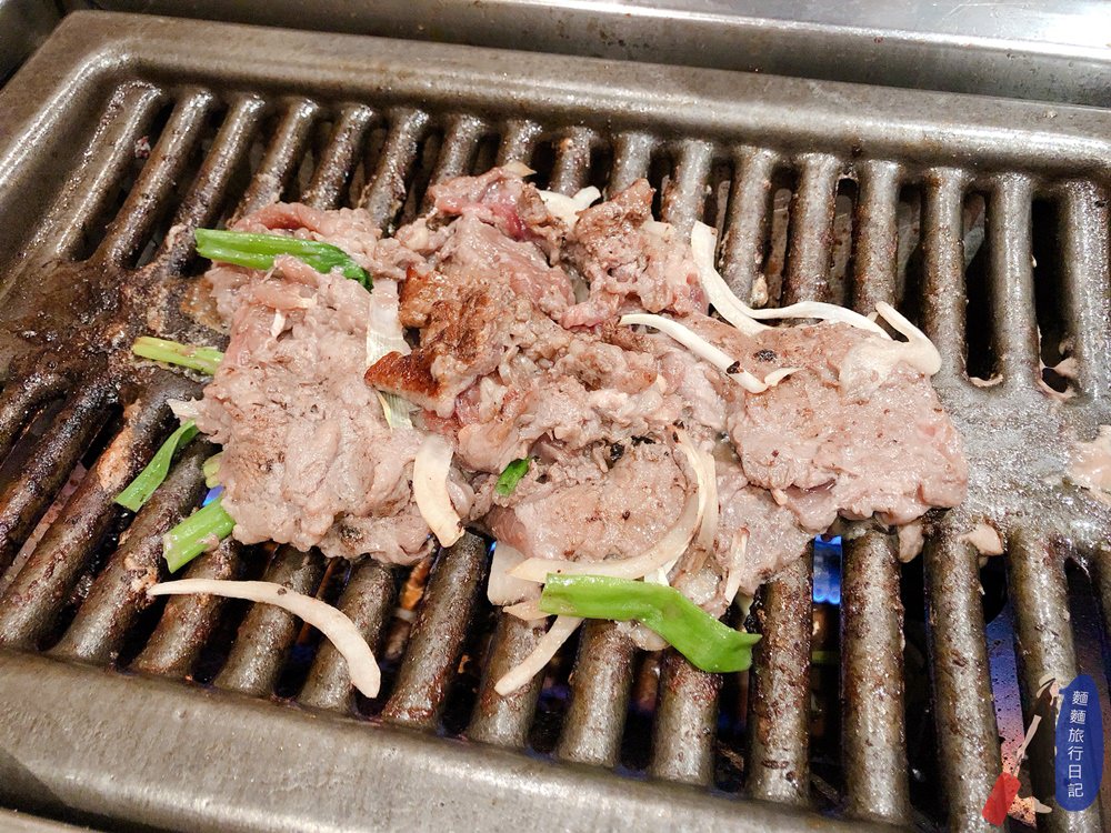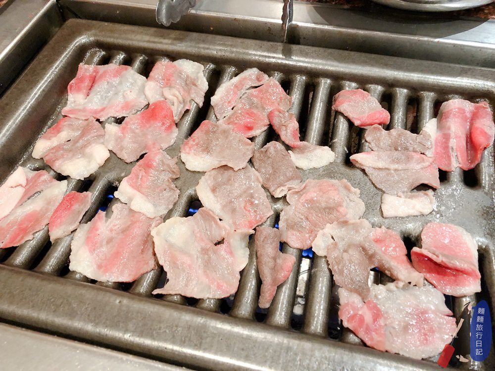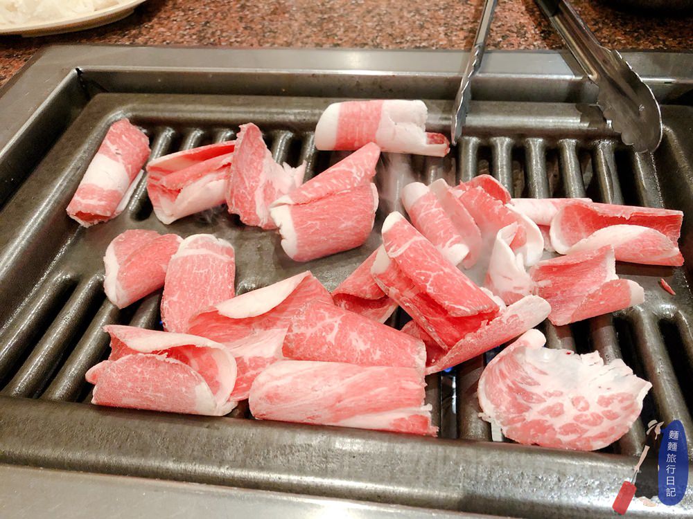 然後這間餐廳的薄片居然是這種很像刷火鍋的肉片,一上來整個暈!這是…..要怎麼烤??? 只好全部丟上烤爐。