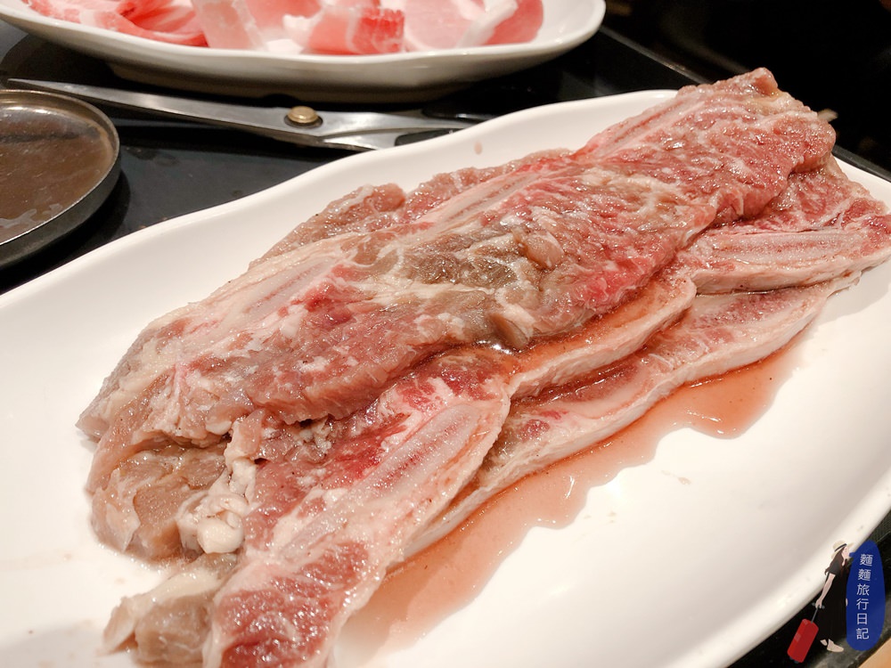 我們點了29鎂的吃到飽,只算我跟大猴兩個人的費用,因為波仔跟樂樂未滿5歲所以免費喔!29鎂的肉有肋骨牛排、小里肌牛肉薄片、牛胸肉薄片、雞肉、豬五花跟調味的豬肉片。