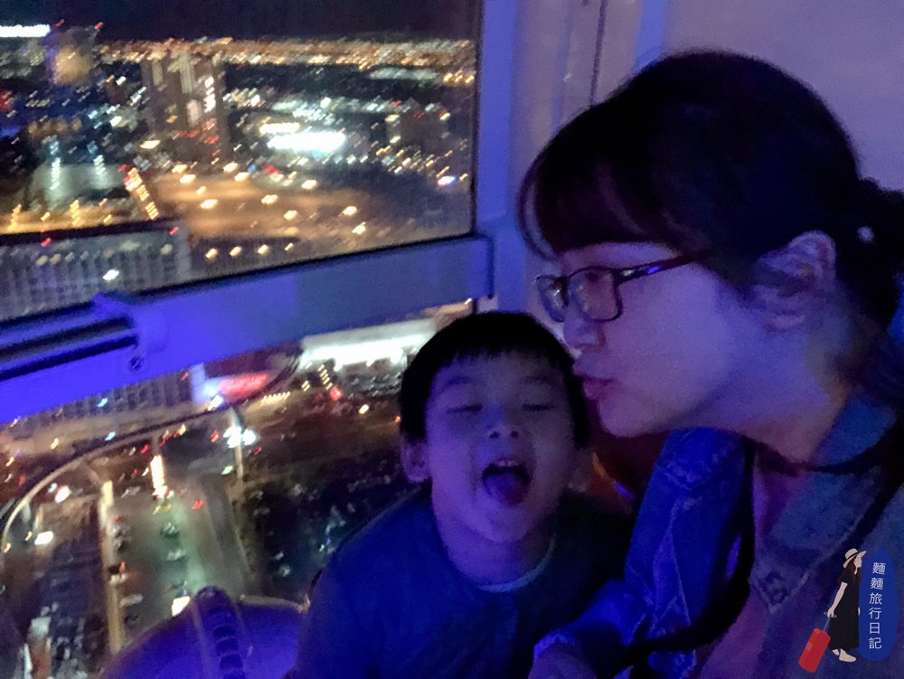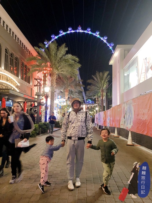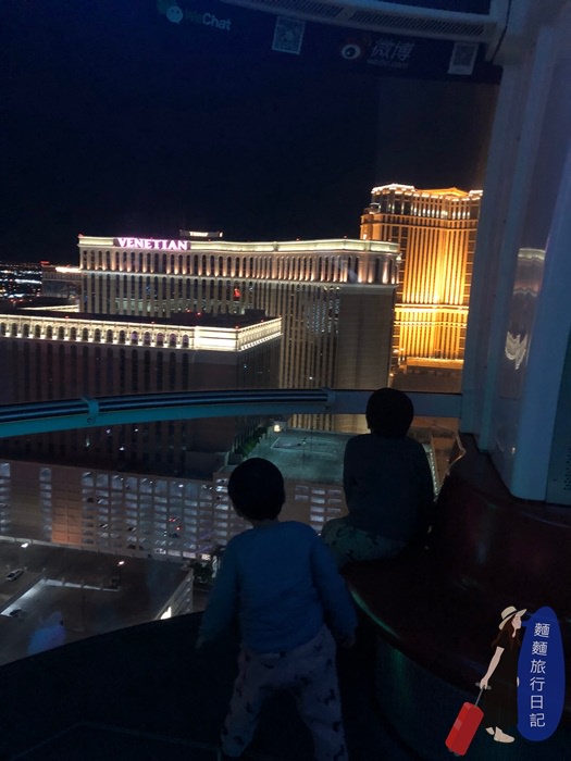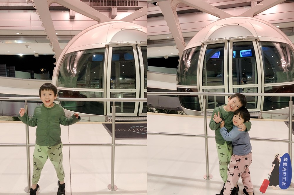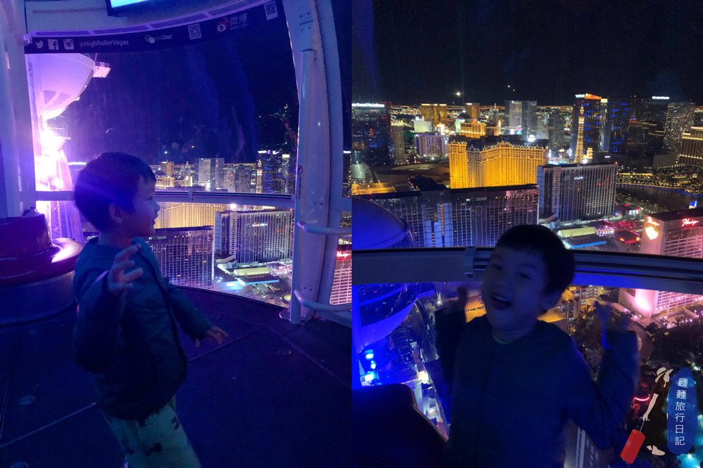 波仔跟樂樂非常的興奮要搭摩天輪啦~~~ High Roller 摩天輪高550英尺,在上面繞一圈要花30分鐘的時間,不論白天搭或是晚上搭乘,都可以欣賞到不同的美麗景色喔!我們今天是晚上來搭乘,既然大猴媽媽擔心晚上帶著小孩亂晃很危險,我又不想錯過不夜城拉斯維加斯晚上的迷人魅力,那我們就來搭摩天輪好好感受一下啦~是不是絕對很安全!