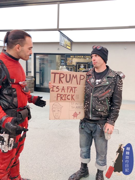 拉斯維加斯賭城大道附近會看到川普的飯店,然後我們逛著逛著就看到這麼人拿著這個告示牌,差點沒笑死,美國人真的都很勇於表達自己的意見耶!By the way在拉斯維加斯真的看到很多人在罵川普 XDDD