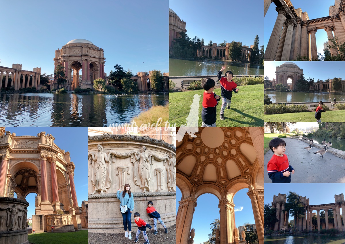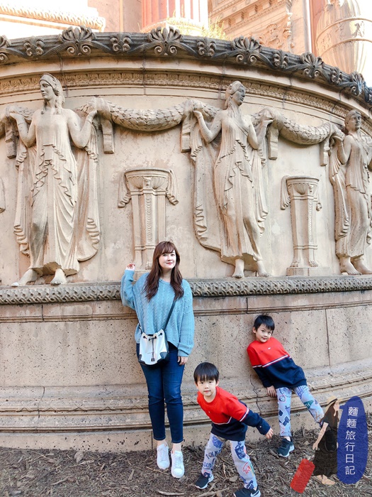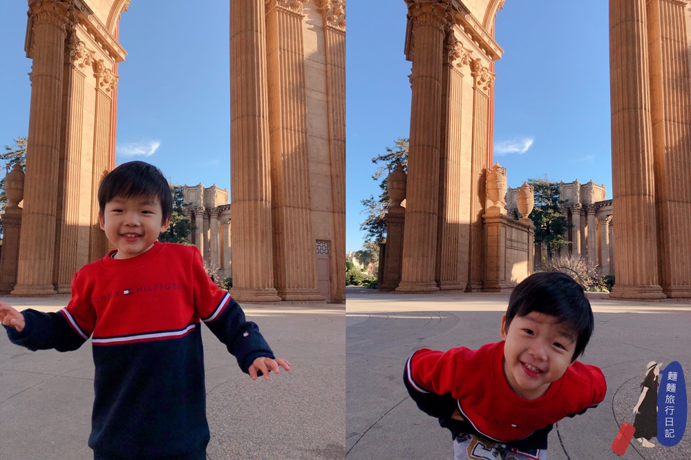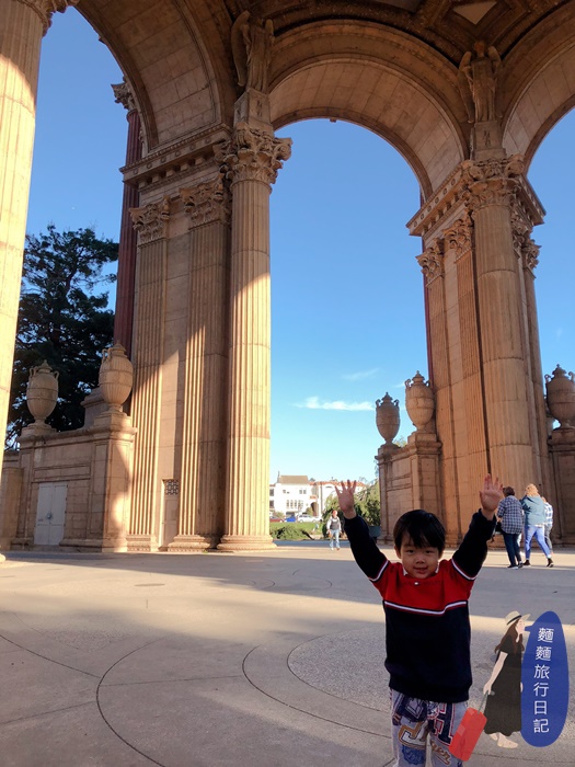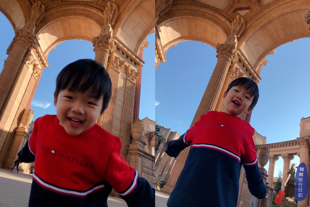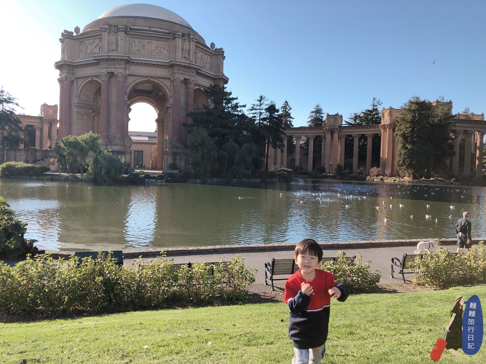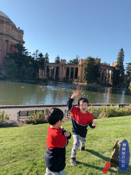 波仔跟樂樂就在草皮上放電了一會,我們就在草皮上納涼,搭配眼前的美景,超級愜意!藝術宮沒來之前會覺得是一個不必要特別來的景點,感覺就是拍照打卡的地方,但是實際來了之後立馬被圈粉,藝術宮的建築真的讓我驚嘆連連,這裡根本不像城市裡的會存在的地方啊!比較像義大利才會有的羅馬建築,波仔跟樂樂也都很喜歡,覺得下午過來散步、走走,是一個很棒的景點!舊金山必來,絕對會被驚呆的藝術宮!絕對要到藝術宮對面的人工湖取景,湖面加上藝術公園頂,簡直美的不要不要的!推薦給大家!
