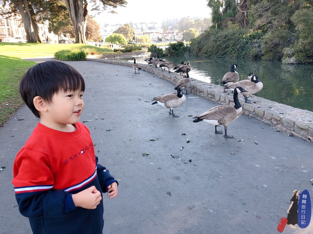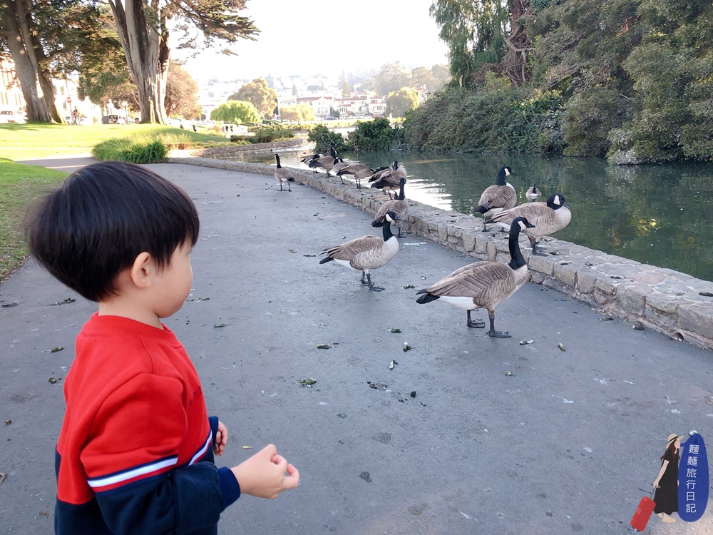 人工湖是附近鳥類、鴨子等生物的棲息地,真的超級多鴨子,而且鴨子完全不怕人~樂樂一直試圖想接近,鴨子群還老神在在,完全不在乎XDDD