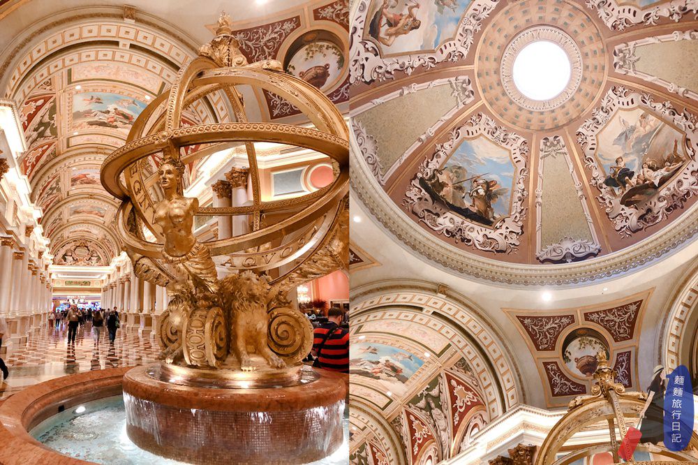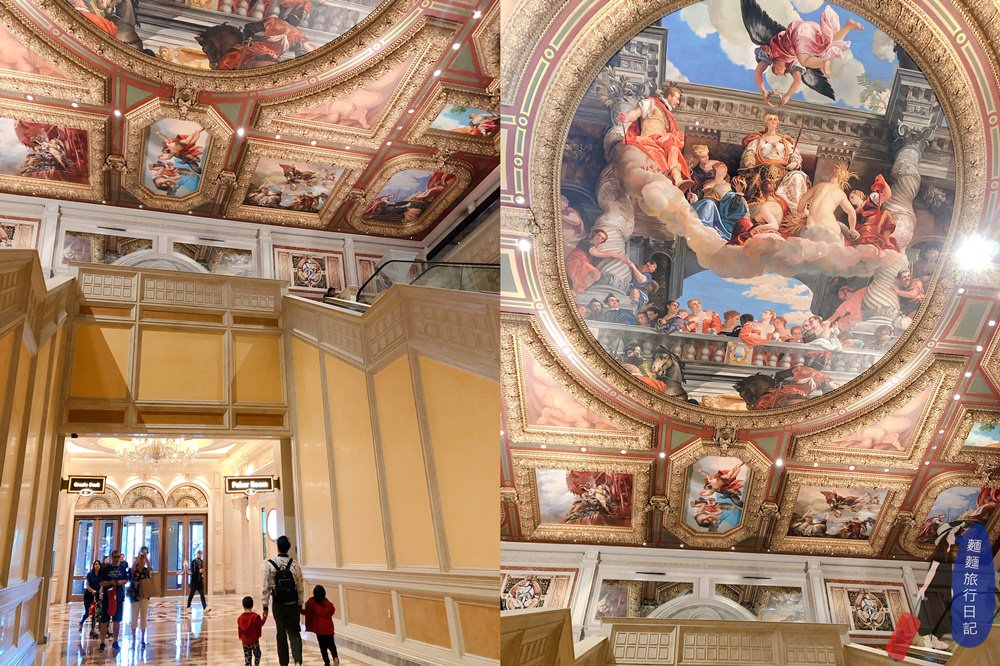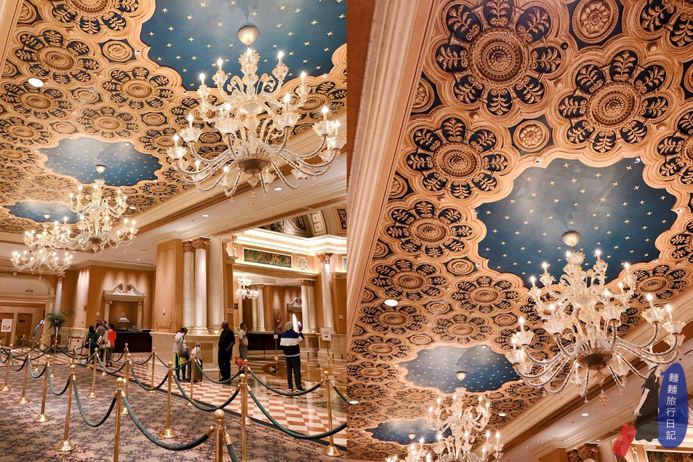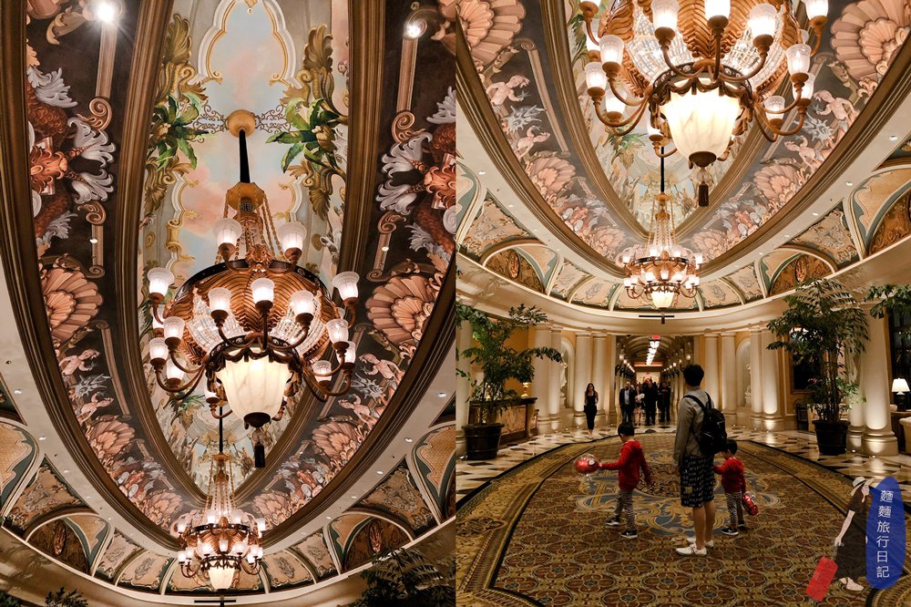 除了賭場外,我們真的是走到哪讚嘆到哪的節奏,這個天花板!!!是不是很狂,真的感覺不出來酒店已經有21歲這麼大了,不論是酒店的奢華程度、裝潢設計及壁畫,都保持超好!超美!我們真的是這樣一路上都邊走邊抬頭看天花板,脖子巨酸無比~平常都不怎麼抬頭,哈哈哈~