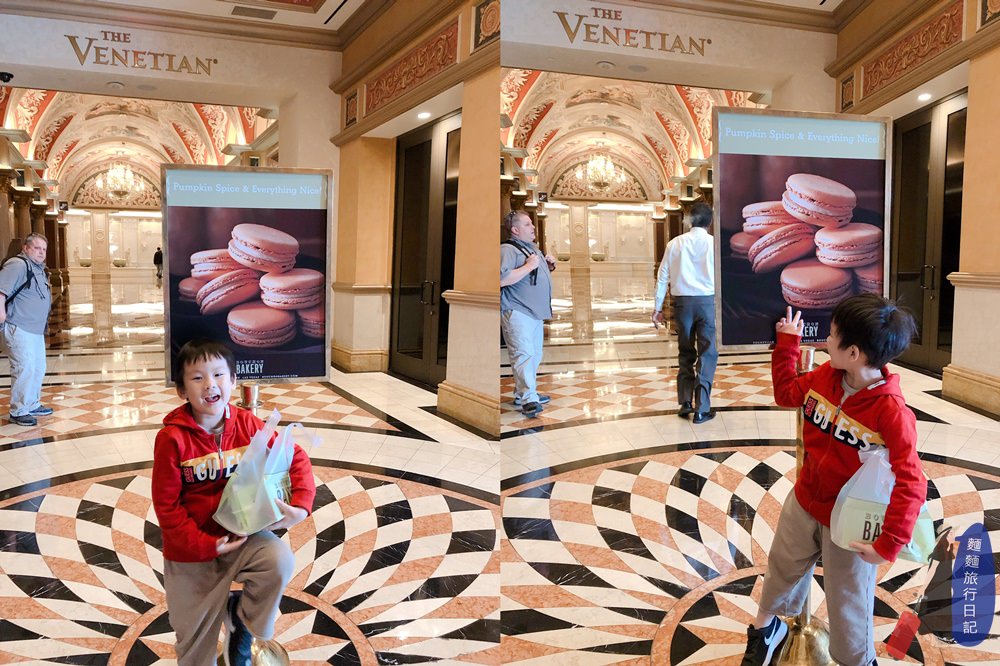 一路從棕櫚泉Palm Springs開到拉斯維加斯,抵達飯店時天早已黑媽麻了,一家四口因為長途車程,舟車勞頓,非常疲憊,但是一進到威尼斯人酒店的大廳,秒醒,真的不誇張,這也太浮誇了吧!我倒抽一口氣,太華美了,只能用富麗堂皇來形容,超級誇張欸!