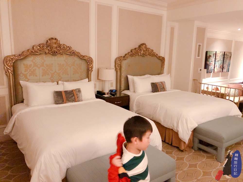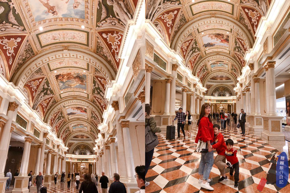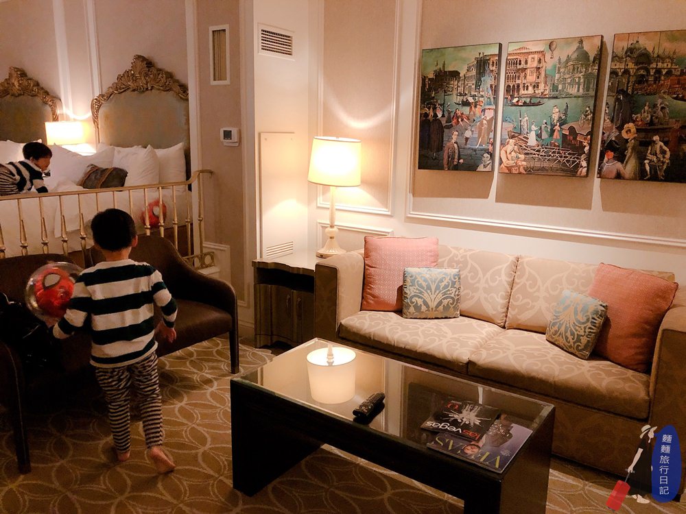 威尼斯人酒店真的是讓我們一家四口讚嘆不已,整間酒店只有貴氣、奢華、富麗堂皇可以形容,裡面的賭場、美麗壁畫、威尼斯人大運河購物中心、室內室外運河等,根本推翻我原本對酒店的認知,套房式的房間也超棒床超舒服XDD,住我們一家四口根本超寬闊,兩個孩子可以在裡面奔跑了,而且通常我不喜歡住太老的酒店,怕房間設施設備太舊,但是威尼斯人酒店真的維持超好,住起來只有貴氣可言,好喜歡這種希臘風的建築、天花板、牆壁上都是滿滿的藝術品,此生必來體驗一次的住宿,來拉斯維加斯,超推薦大家來住威尼斯人酒店