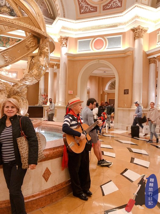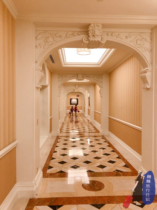 從Lobby走到房間要走400公尺吧!這大概是我們住過規模最大的酒店了,因為威尼斯人酒店的設施是開放給大家自由進出參觀的,就算不是房客也可以進來,所以客房的戒備相對森嚴,每一個轉角都有守衛檢查房卡!在這裡住宿也很安心!