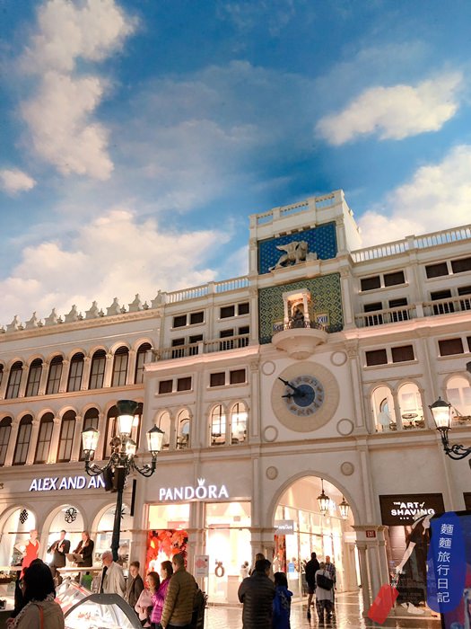 超狂,這是在室內的購物中心,那個藍天白雲多的天空是天花板喔~然後整個購物中心就以威尼斯的街道為主設計,建築整個很巴洛克風格,就連路燈都很義大利呢。