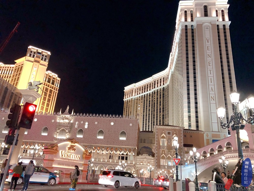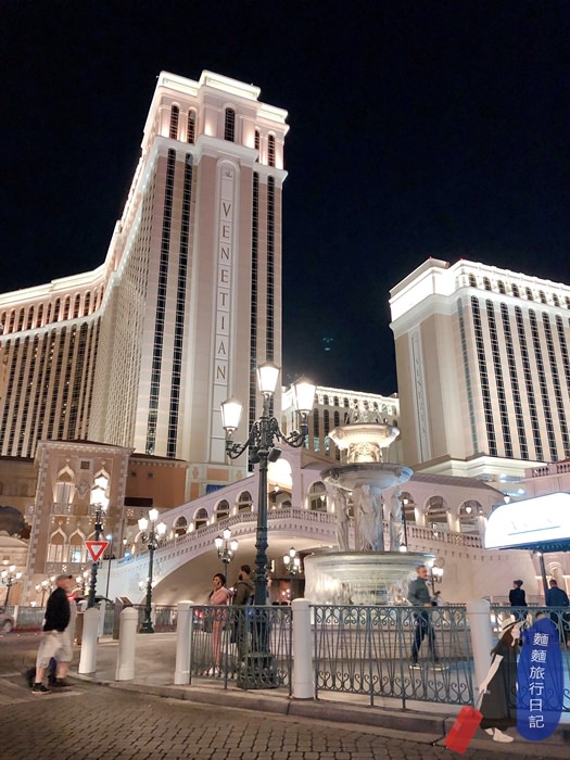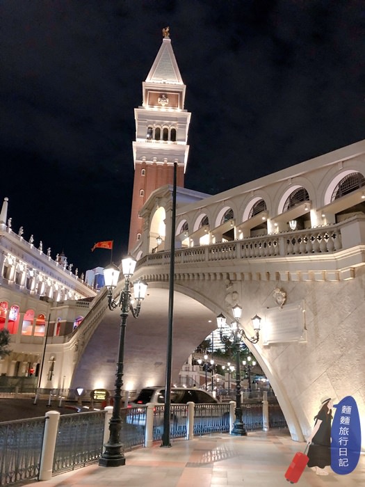 威尼斯人酒店晚上跟白天有不同的樣貌呢!晚上也很好拍~尤其是路燈應在一整片白色的建築物上,很有氣質啊!