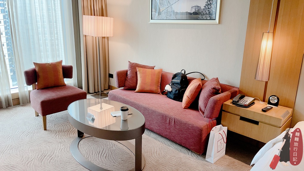 床邊居然有一個可以放容納3-4人座的沙發椅區,超級棒的!晚上叫外送的吃飯區很舒適啊!