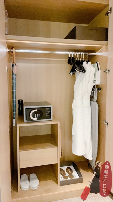 茶水櫃旁就是簡單的一櫃區~有提供浴袍跟室內拖鞋。