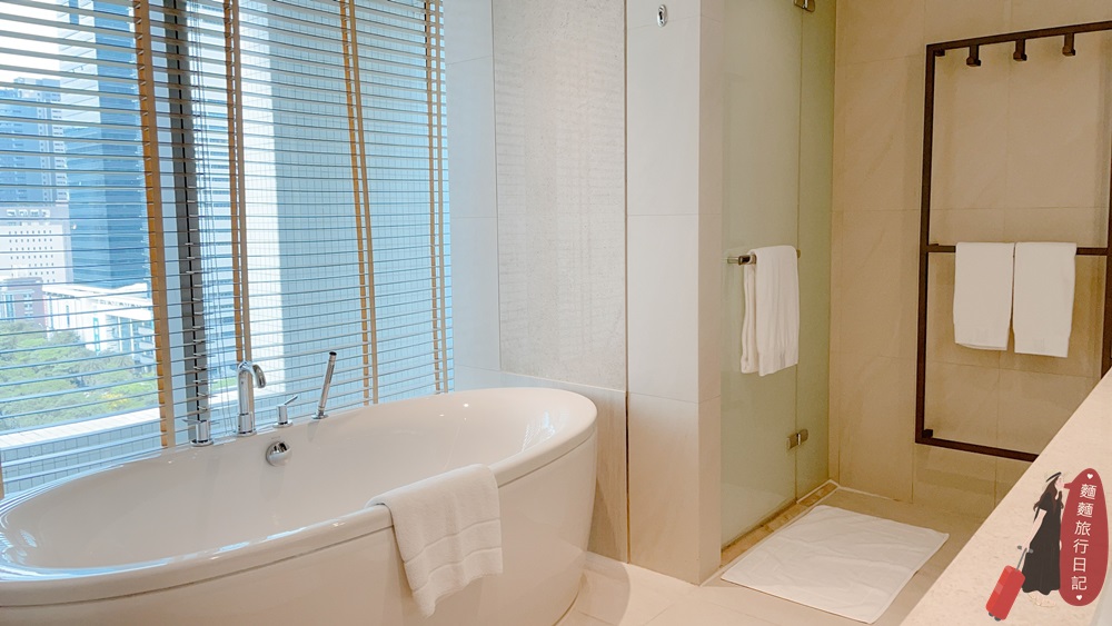 浴缸不大,但是浴缸前面也是景觀落地窗啊啊啊!太犯規了,可以邊泡澡邊欣賞台中夜景!