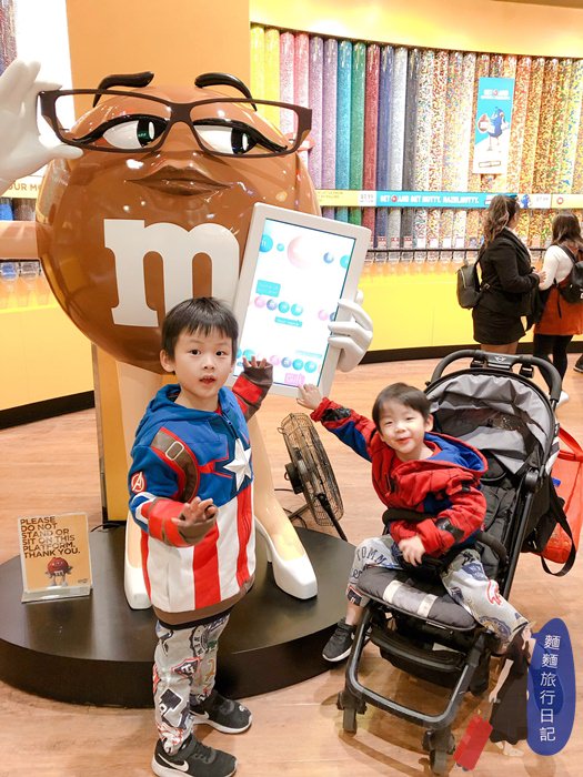 其實來拉斯維加斯之前,我就一直肖想要來M&M巧克力專賣店~雖然知道小屁孩可能會在裡面失控、大爆走,但是M&M是我童年的回憶啊!