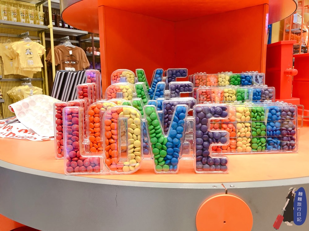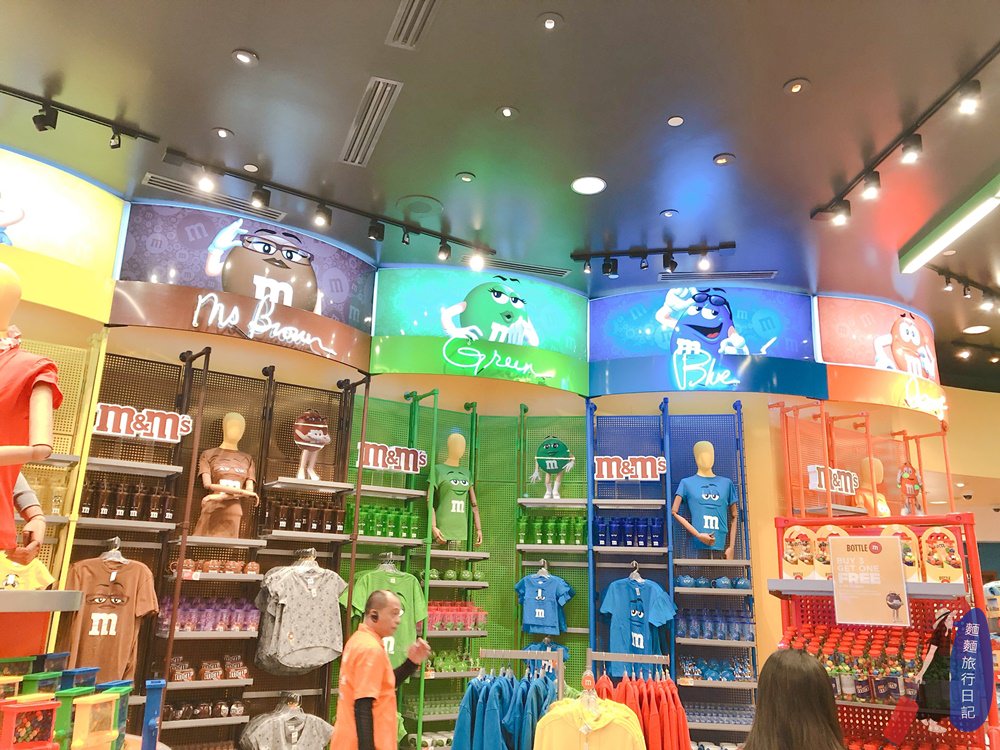尖叫聲!也太繽紛可愛了吧~第一層主要是紀念品區,有一整面牆的M&M巧克力的衣服~