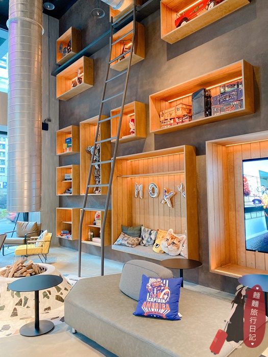 一樓大廳很大,其實我當初會訂這間酒店是因為哀居上各大網美妹妹們都在MOXY拍了超美的照片!所以我抱著就算被大猴嫌棄到爆也要住這間酒店的決心(到底是來考試還是來拍照的😂)。