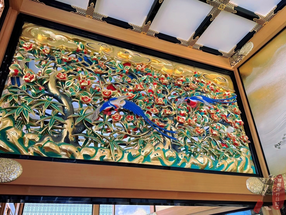 走廊也是金光閃閃,彩色的雕刻欄間絢麗多彩。