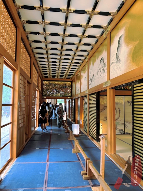 走廊天花板也不放過,漆上黑漆、貼上金具的格天井,處處是細節,是藝術!