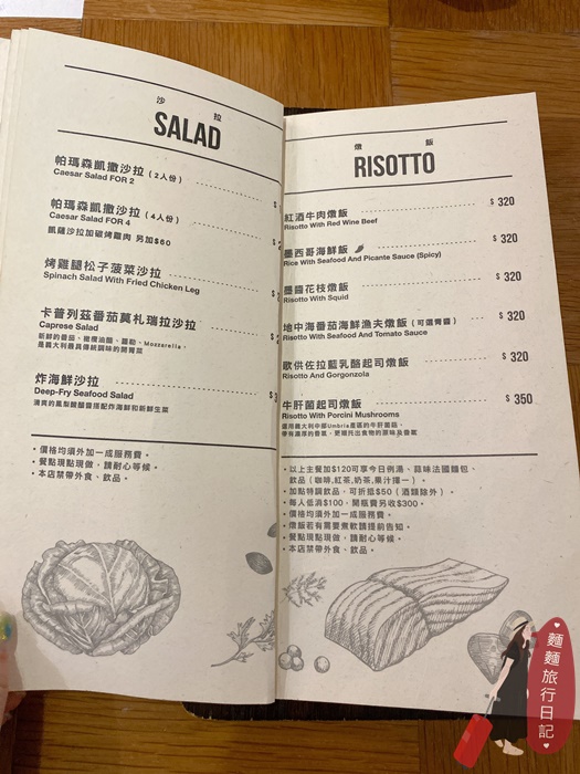 也有沙拉~沙拉後面很貼心的標示幾人份,如果人多可以點一份沙拉一起分食!主餐有燉飯~