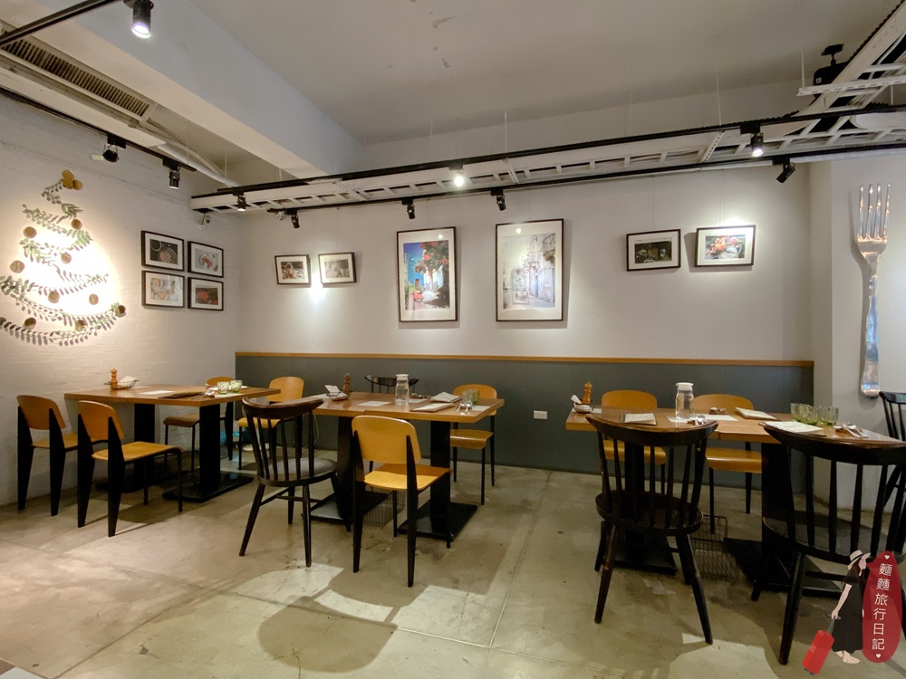 餐廳內部的座位區也布置得很舒服,牆上掛滿了相框~還有一支超大支的刀叉掛在牆上!