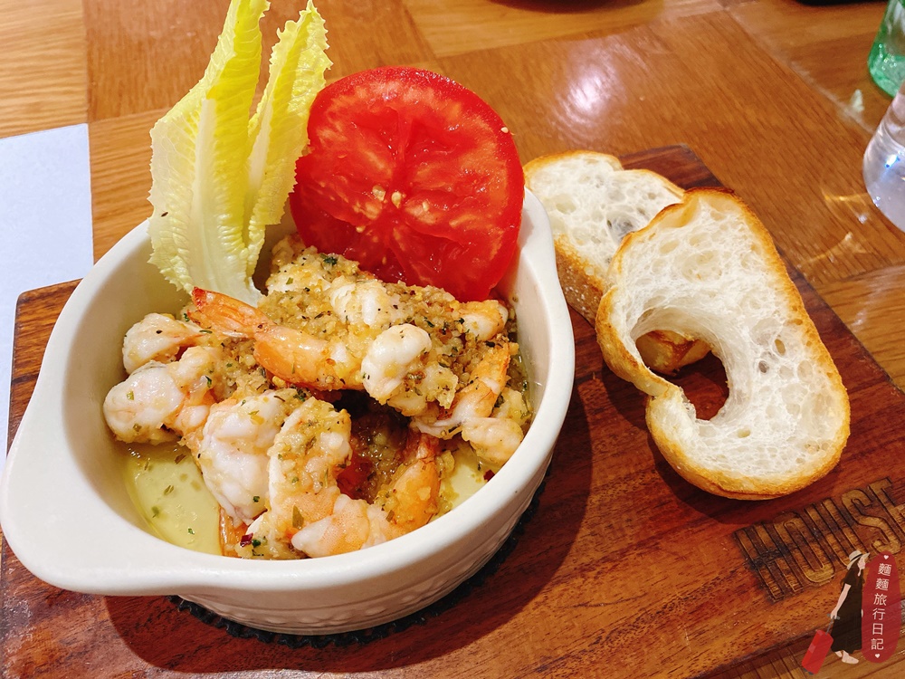 香料蒜味蝦跟我預期的有落差,蝦比想像中小隻,蝦子口感也不夠爽脆,旁邊搭配的麵包也普普,覺得套餐的麵包比較好吃呀~