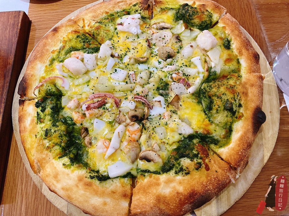 ✔ 青醬海鮮披薩 $320元 👍👍👍